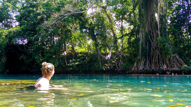 Tucked away in the tropical jungle, the pools owe their colour and clarity to natural limestone filtration and pure depth.
